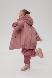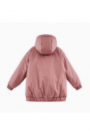 Осенняя куртка тёмно-розового оттенка с капюшоном для девочки. Модель объёмного силуэта. Спущенная линия плеча, эластичные манжеты. Застёжка на молнию. Скрытые карманы. Комбинированная подкладка: флис и нейлон. Утеплитель: гипоаллергенный синтепон.