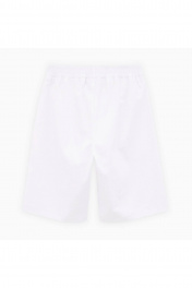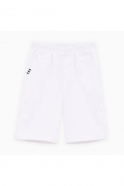 Белые шорты из твила. Модель прямого силуэта. Средняя посадка, мягкий эластичный пояс. Дополнены карманами-хулиганами. Лаконичный декор репсовой тесьмой. Можно позиционировать как модель унисекс.