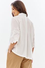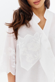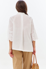 Нарядный костюм станет настоящей жемчужиной вашего гардероба. Этот комплект, состоящий из блузы и брюк, идеально впишется в ритм жизни современной женщины. Это не просто одежда, а готовая капсула для создания множества неповторимых образов. Блуза имеет свободный силуэт с V-образной горловиной.Изготовлена из 100% хлопка и декорирована нежнейшим кружевом. Брюки бананы с классической посадкой визуально вытягивают и стройнят . Пояс притачной на эластичной тесьме гарантирует идеальную посадку по фигуре.