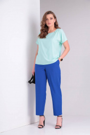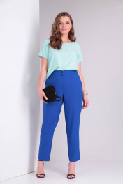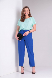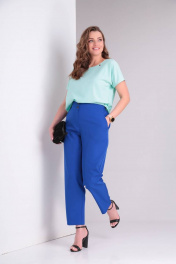 Брюки классического кроя, слегка зауженного к низу, с высокой посадкой. Пояс шириной 5 см., по спинке расположена резинка, на передних половинках имеются карманы. На задних половинках карманы обманки. Длина по боковому шву 101 см. По шаговому шву 72 см. Высота посадки по переду 32 см.