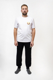 Мужской джемпер с гербом Беларуси — это трикотажное изделие, выполненное в сдержанных тонах, а на груди нанесенный методом термипечати изображением Государственного герба Республики Беларусь. Он может быть как элементом повседневного стиля, так и спортивной атрибутикой, сочетая комфорт с патриотической символикой. Длина джемпера 64(44-50-170-176); 65(52-66/170-176);68(44-50/182-188); 69(52-62/182-188);Ширина по линии груди 50-68 Длина рукава 22-23(170-176); 24-25(182-188); Ширина рукава 18,2-23,6
