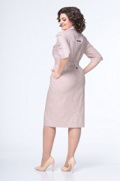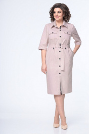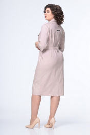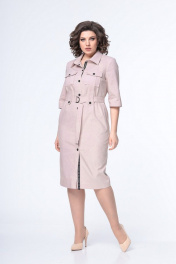 Стильное женское платье выполнено в стиле «сафари» из ткани с большим содержанием хлопка. Платье полуприлигающего силуэта с центральной застежкой на кнопки. По переду в верхней части лифа накладные карманы с клапаном и патой переходящей в шлевки на талии, горловина оформлена рубашечным воротником на стойке. Спинка задекорирована нашивкой и шлевкой с кнопкой. Рукава втачные, одношовные. В комплект входит ремень из основной ткани. Длина платья по спинке - 109 см Длина рукава - 38 см Платье Наименование 48 50 52 54 56 58 Длина спинки 109 109 109 111 111 111 Ширина спинки 40 40 40 43 43 43 Ширина изделия на уровне 52 54 56 58 60 62 глубины проймы 1/2 Ширина по линии талии 1/2 49 51 53 55 57 59 Ширина по линии бедер(низа) 1/254 55 57 58,3 59,83 61,3 Длина рукава 38 38 38 39 39 39 Ширина рукава вверху 1/2 18 18,5 19 19,5 20,5 21,5 Ширина плеча 12,5 12,5 12,5 13,5 13,5 13,5