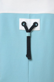 Элегантный женский комплект, выполнен из трикотажного полотна. Кардиган полуприлегающего силуэта выполнен из двух цветов, по переду накладные карманы с отделкой из шнура и хольнитенами, по спинке отрезная кокетка и настрочной декоративный элемент с люверсами и шнуром. По боковым швам разреры с люверсами и шнуром, рукава втачные с отделкой из сетки. Застежка на молнию. Брюки с лампасами по боковым швам на уровне бедер карманы, пояс на резинке. Топ полуприлегающего силуэта, на бретелях. Длина кардигана по спинке - 97 см Длина рукава кардигана - 60 см Длина брюк по боковому срезу– 102 см Длина брюк по шаговому шву – 75 см Длина топа – 49 см