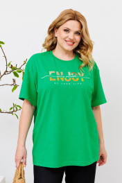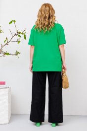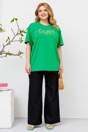 Комплект из футболки и льняных брюк с печатью «enjoy» BRELA 2359 зеленый-черный