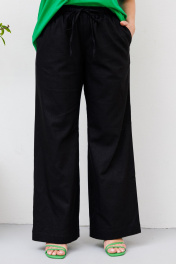 Комплект женский состоит из футболки и брюк на резинке. Базовая женская футболка. Крой футболки свободный, оверсайз.Вырез горловины круглый. Рукав до локтя. Линия плеча спущенная.Футболка выполнена из хлопкового трикотажного полотна.Трикотаж не просвечивается, не деформируется после стирки, легко гладится.По переду выполнена авторская печать в виде надписи “enjoy” переливающейся фольгой. Длина - 70 см Льняные брюки свободного кроя. Пояс на резинке, для удобства в носке в пояс вставлен шнурок для регулирования обьема по талии. Посадка брюк - высокая. По переду расположены карманы с наклонным входом. По низу широкая подгибка для возможности коррекции по длине. Брюки с хорошей посадкой, в этом заключается их секрет универсальности и возможности носить их девушкам с любым типом фигуры.Идеальные брюки для летней жары, в них ваша кожа будет дышать. Они выполнены из мягкого льна с вискозой. Отличный вариант, как для городского лета, так и отдыха на море.Лен хорошо поглощает влагу, не вызывает аллергии, обладает высокой степенью воздухопроницаемости. Ткань не просвечивается, и не катается после носки. Длина изделия: 107 см Длина шагового: 82 см Ширина брюк по низу: 27 см Ширина пояса: 4 см