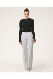 Брюки прямые из костюмной поливискозной ткани, классической длины, слегка аккуратно расклешённые от линии колена, со "стрелками", с застёжкой спереди, с функциональными боковыми карманами. На задних половинках талиевые вытачки. Брюки на притачном поясе со шлёвками и резинкой сзади. Размер 42 84-64-92 Размер 44 88-68-96 Размер 46 92-72-100 Размер 48 96-76-104 Размер 50 100-80-108.