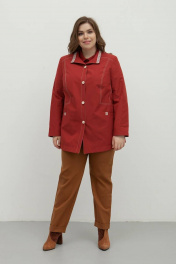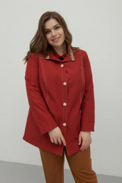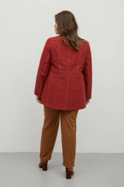 Куртка женская из ткани плащевой группы, полуприле- гающего силуэта,однобортная с притачными планками и застёжкой на 4 петли и пуговицы. Полочка с притачной кокеткой и рельефами от кокетки до талии. Карман - листочка с втачными концами , на листочке настрочена отделочная тесьма. Спинка с кокеткой и рельефами от пройм до низа. Центральная часть спинки с притачным поясом по линии талии, со средним швом и рельефами. Рукав втачной, двухшовный. Воротник -стойка. По отлету верхнего воротника настро- чена отделочная тесьма. Низ изделия обтачной. Подкладка по низу изделия притачная. ВНИМАНИЕ! МОДЕЛЬ МАЛОМЕРИТ