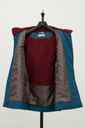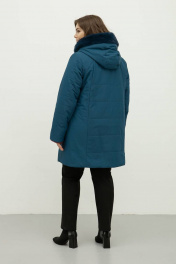 Полупальто женское утепленное из ткани плащевой группы, однобортное, с застежкой по борту на 4 петли и пуговицы. Полочка с рельефным швом от горловины. Детали средней части полочки простеганы поперек параллельными строчками, боковой части -вдоль. Карман расположен в рельефном шве. Спинка с рельефными швами от горловины. Детали средней части спинки простеганы поперек параллельными строчками, боковой части –вдоль. Рукав двухшовный. Детали верхнего рукава простеганы поперек параллельными строчками. с отложной манжетой из отделочного меха. Низ рукава обтачной, обтачка из искусственного меха. Воротник-стойка, втачной, из искусственного меха. Капюшон пристегивается к изделию на 5 петель и пуговиц. Капюшон состоит из трех частей, с опушкой из отделочного меха. Низ изделия обтачной. Детали подкладки настрачиваются на утеплитель, средняя часть спинки выполнена из искусственного меха. Подкладка по низу изделия притачная.