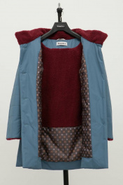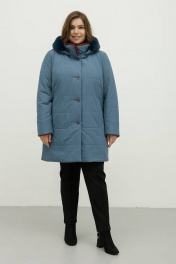 Полупальто женское утепленное из ткани плащевой группы, однобортное, с застежкой по борту на 4 петли и пуговицы. Полочка с рельефным швом от горловины. Детали средней части полочки простеганы поперек параллельными строчками, боковой части -вдоль. Карман расположен в рельефном шве. Спинка с рельефными швами от горловины. Детали средней части спинки простеганы поперек параллельными строчками, боковой части –вдоль. Рукав двухшовный. Детали верхнего рукава простеганы поперек параллельными строчками. с отложной манжетой из отделочного меха. Низ рукава обтачной, обтачка из искусственного меха. Воротник-стойка, втачной, из искусственного меха. Капюшон пристегивается к изделию на 5 петель и пуговиц. Капюшон состоит из трех частей, с опушкой из отделочного меха. Низ изделия обтачной. Детали подкладки настрачиваются на утеплитель, средняя часть спинки выполнена из искусственного меха. Подкладка по низу изделия притачная.