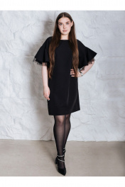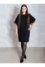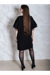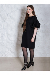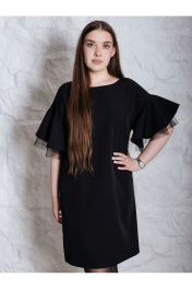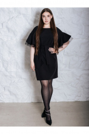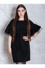 Очень красивое вечернее платье, представлено в больших размерах. Нарядное женское платье прямого силуэта, изготовлено из плотной, гладкой текстильной ткани. Платье украшено черными стразами с деликатным блеском. Рукава с мягкой линией плеча, с отделочной тканью еврофатин. Пояс в комплекте. Платье идет в размер, на модели представлено платье 46 размера, рост девушки 172, параметры 93-69-98.