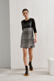 Сарафан, демисезонный, серый, черный, на каждый день, шерсть и экокожа BURVIN 8769-81