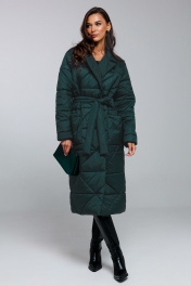 Стеганное демисезонное пальто прямого силуэта с поясом Butеr 2872 изумруд