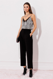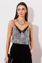 Блузка (Топ) на регулируемых бретелях, прямого силуэта. Полочка с рельефными швами под грудью, вставками из кружева по краю выреза и нагрудными вытачками. Блузка (Топ) на подкладке из основной ткани.