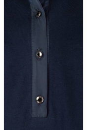 Современное платье полуприлегающего силуэта из трикотажного полотна с большим содержанием хлопка. Отложной воротничок, полноценная застежка на пуговицы, отделка из плащевки по низу платья, патам и планке. Отличный вариант для работы и для вечерних посиделок с друзьями.