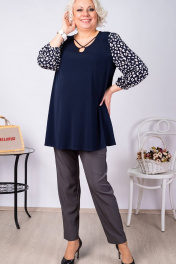 Туника большой размер из шифона и трикотажа с воротом Camelia 2319 1