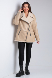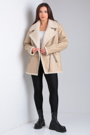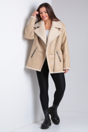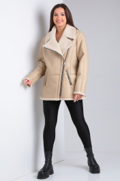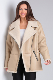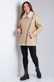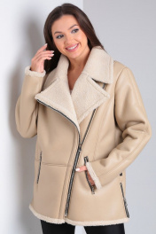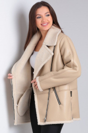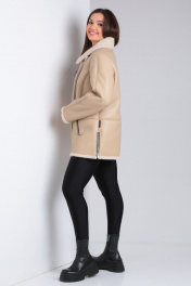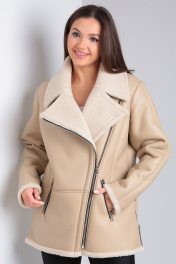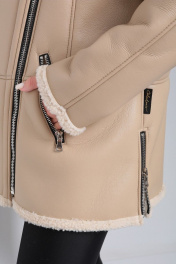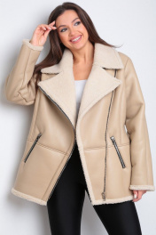 Короткая дубленка из экокожи с меховой изнанкой и карманами Celentano 2047.2 бежевый