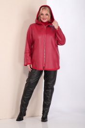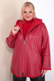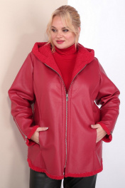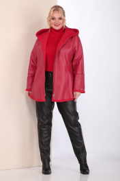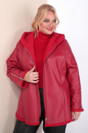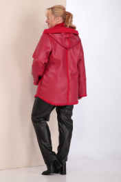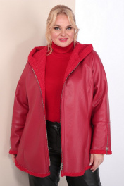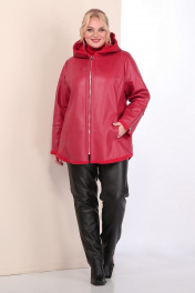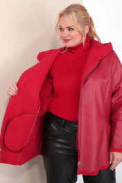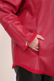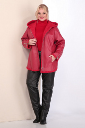 Короткая кожаная дубленка с капюшоном и фигурным низом Celentano 2068.1 алый