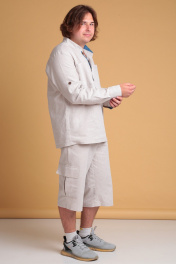 "Мужские широкие льняные шорты от Celentano. Пояс притачной, застежка на петлю и пуговицу и гульфик с молнией. В боковых швах - карманы ""хулиганы"", сзади - накладные карманы. В нижней части шорт сбоку выполнены накладные карманы с клапанами. Длина изделия без учёта пояса по боковому шву 67 см. Шорты выполнены из качественного белорусского льняного полотна (пр-во Орша). Ткань не тянется. Все пуговицы натуральные кокосовые. Наши шорты из натурального льна будут незаменимы для повседневного использования на отдыхе жарким летом. На фото шорты с нашей рубашкой 3024. Также оба изделия можно приобрести костюмом 3029 либо скомпоновать шорты с нашей рубашкой 3023 или пиджаком 3022."