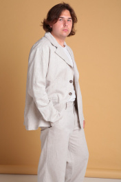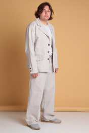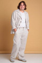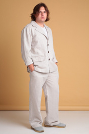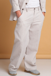 Мужские широкие льняные брюки от Celentano. Пояс притачной, застежка на петлю и пуговицу и гульфик с молнией. В боковых швах - карманы ""хулиганы"", сзади - накладные карманы. Длина изделия без учёта пояса по боковому шву 106 см., по шаговому шву 81 см. Брюки выполнены из качественного белорусского льняного полотна (пр-во Орша). Ткань не тянется. Все пуговицы натуральные кокосовые. Наши брюки из натурального льна будут незаменимы для повседневного использования жарким летом. На фото брюки с нашей рубашкой 3023. Также оба изделия можно приобрести костюмом 3026 или скомпоновать брюки с пиджаком 3022.