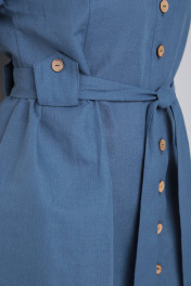 Летнее льняное платье от Celentano длиной миди. Застежка центральная на петли и пуговицы, воротник втачной отложной. Полочка с рельефами и отрезным бочком, который слегка присборен. Центральная часть цельная. По спинке платья идет подрез по линии талии, нижняя часть которого присборена. По талии выполнены фигурные паты для пояса. В боковом шве карманы. Рукав коротний спущеный с притачнойя манжетой. Платье выполнено из качественного белорусского льняного полотна (пр-во Орша). Ткань не тянется. Все пуговицы на платье натуральные кокосовые. Длина изделия по спинке 112 см. В комплекте пояс из основной ткани. Рост модели на фото 173 см. Наше романтичное платье из натурального льна будет комфортно для повседневного использования весной и жарким летом. Красиво будет смотреться также с поясом контрастного цвета.