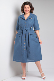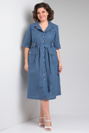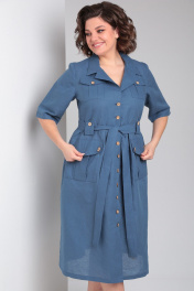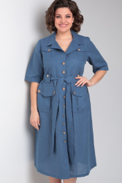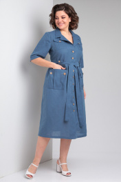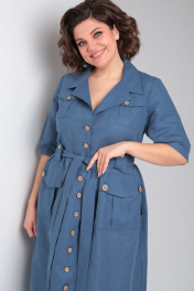 Очаровательное льняное платье в стиле ""сафари"" от Celentano длиной миди. Застежка центральная на петли и пуговицы, воротник отложной пиджачного типа. По полочке и спинке платья идет подрез по линии талии, нижняя часть платья присборена. По талии выполнены паты для пояса. Полочка с карманами с клапаном и нагрудными вытачками. Ниже подреза расположены функциональные накладные карманы с клапаном. Рукав одношовный втачной длиной до локтя. Платье выполнено из качественного белорусского льняного полотна (пр-во Орша). Ткань не тянется. Все пуговицы на платье натуральные кокосовые. Длина изделия по спинке 118 см., длина рукава 36 см. В комплекте пояс из основной ткани. Рост модели на фото 170 см, 52 размер. Наше платье из натурального льна будет комфортно для повседневного использования весной и летом. Красиво будет смотреться также с поясом контрастного цвета.