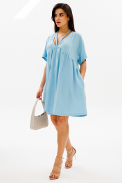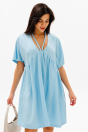 Голубое платье трапеция с косыми подрезами и штрихами на горловине COCKTAIL 114/1