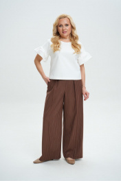 Блузка прямая и свободная, слегка укорочена, линия плеча спущена. По спинке -пуговицы.