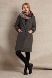 Цвет: серый Описание внешнего вида: Пальто свободного просторного силуэта (oversize), практичной расцветки и трендового дизайна длиной 92,0 см, выше коленей, застежка на одну пуговицу и одну пришивную кнопку, воротник пиджачного типа. Пальто с карманами в швах по переду и мини-карманом на груди. По спинке - хлястик. Рукава длиной 52,0 см на спущенном плечевом шве, с притачной манжетой. Пальто на подкладке. Описание материала: Модель изготовлена из буклированного шерстяного полотна цвета графит с меланжевым эффектом. Букле невероятно уютный и теплый материал, словно обволакивающий фигуру, смотрится изысканно и элегантно. Итальянское букле не мнется, долго носится, хорошо держит форму. Пальто на вискозной подкладке с бельгийским утеплителем ISOSOFT 150 г/ кв.м. –предназначено для периодов: холодная осень-весна, теплая зима.