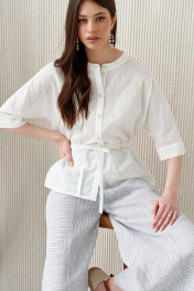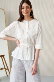 Белая блузка из кружева и хлопка с воротником и манжетами Colors of PAPAYA 1586 молочный
