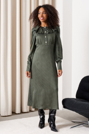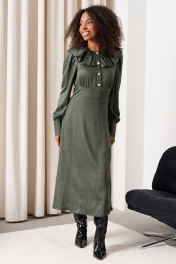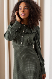 Платье юбка-клеш с рюшей и застежкой на потайную тесьму C. of PAPAYA NEW 1745 темно-зеленый