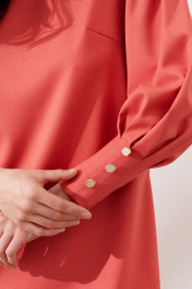 Платье длиной 87 см. Рукав втачной объемный со складками по окату длиной 60 см. Низ рукава с цельнокроеной манжетой встречными складками и декоративными пуговицами. Спинка с разрезом по горловине. Застежка по спинке на потайной крючок.