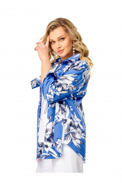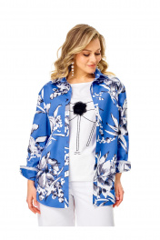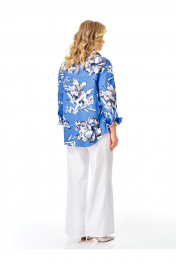 Блузка-рубашка свободного силуэта из хлопковой ткани. Воротник отложной, блузка застегивается на петли-пуговицы. Рукав втачной длинный со спущенным плечом, с манжетами. Прекрасный вариант для офиса, прогулки, дома, пикника, в кафе.
