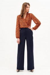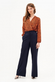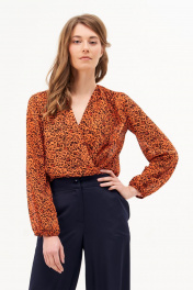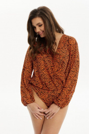 Блуза-боди из шифона с принтом, запах, сборки, складки Condra 16204 терракотовый