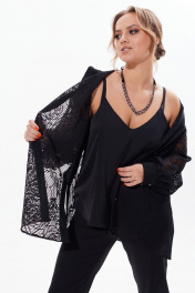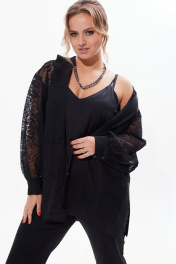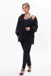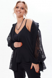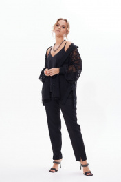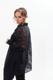 Кружевная блузка с разрезами и длинным рукавом Condra 16226 черный