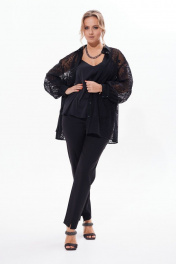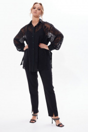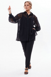 Нарядная кружевная блузка с разрезами по бокам. Блузка прямого силуэта с планкой на пуговицах с длинным рукавом с манжетой. Имеется отложной воротник на стойке. Можно комбинировать и экспериментировать с различными образами. Эта великолепная блузка станет неотъемлемой часть Вашего гардероба. Добавьте топ, юбку, брюки, модные аксессуары, и вы будете неотразимы. В комплект входит только верхняя блузка-рубашка.