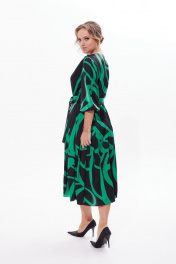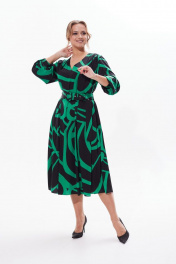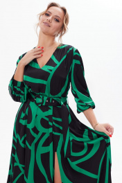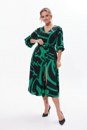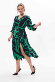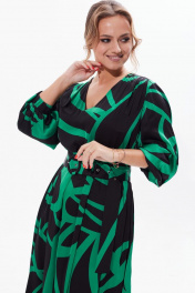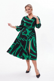 Платье полуприлегающего силуэта длиной миди. V-образная горловина. Юбка платья со складками, есть высокий разрез. Рукав длинный втачной, манжет на резинке. В боковом шве молния. Платье на подкладке. В комплекте идет ремень. Удобное платье и элегантное платье покорит своей легкостью и яркостью!