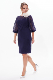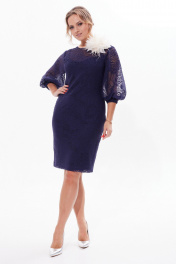 Нарядное платье из кружев и трикотажа с разрезом Condra 2412 синий