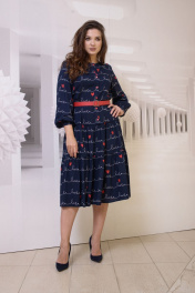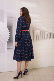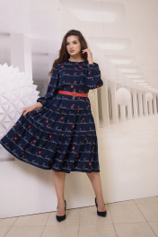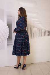 Вискозное платье со стильным принтом длиной «миди». Округлая горловина, по переду борта, застегивающиеся на петли-пуговицы. Длинный втачной рукав, по низу рукава манжеты с эластичной тесьмой. Юбка в платье с воланами, расширенная. Платье без подкладки. Имеется съемный пояс, который подчеркнет Вашу талию.