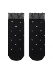 Хлопковые носки с воздушным бортом и сердечками из нитей люрекса созданы, чтобы расставлять оригинальные акценты в повседневном и спортивном образе.