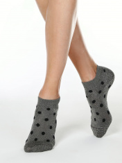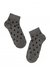 Укороченные носки в горошек с сияющим люрексом созданы для девушек, которые любят выглядеть оригинально и с удовольствием подчеркивают свою индивидуальность. Благодаря высокому содержанию вискозы носки комфортные, легкие и практичные.