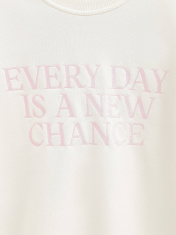 Свободная футболка из футера с вышивкой «Every day is a new chance» станет основой для множества расслабленных базовых образов. • умеренный oversize • удлиненная модель • круглый вырез горловины с планкой в рубчик • спущенная линия плеч • короткие втачные рукава с акцентными строчками • мягкий и приятный к телу футер без начеса • вышивка «Every day is a new chance» • по спинке - лаконичная объемная печать с логотипом бренда • сохранение формы и цвета при соблюдении рекомендаций по уходу • безупречный стиль и абсолютная свобода в движениях • всегда приятно открывать новые грани в привычной вещи.
