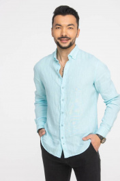 Мужская классическая сорочка из вываренного льна стильного покроя с застежкой на пуговицы. Длинный рукав на манжете с двойной пуговицей. Классический воротник Длина спины 75см Размер 46,48 - обхват шеи 40,обхват груди 92,96 рост 170/176 Размер 50 - обхват шеи 41,обхват груди 100 рост 176/182 Размер 52 - обхват шеи 42,обхват груди 104 рост 176/182 Размер 54 - обхват шеи 43,обхват груди 108 рост 182/188 Размер 56 - обхват шеи 44,обхват груди 112 рост 182/188