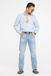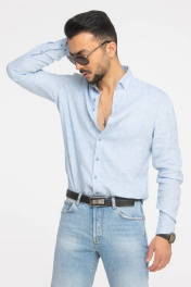 Рубашка мужская классическая из льна для делового стиля Cool Flax КФР002 голубой