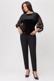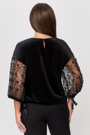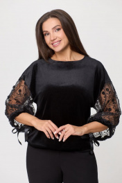 Бархатная блуза – удачный вариант нарядной одежды. Спущенная линия плеча создаёт комфорт при носке. Рукава длиной ¾ изготовлен из ткани компаньона и декорирован атласными лентами. Низ изделия на резинке. Блуза в комплекте с юбкой или брюками составит прекрасный вечерний вариант. Длина 61 см