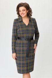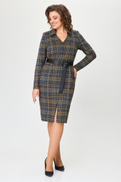 Платье длиной 105 см из трикотажа в нейтральных оттенках DaLi 5718 серый_клетка