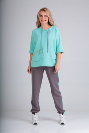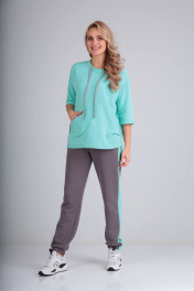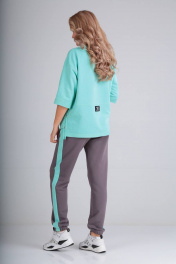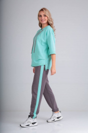 Эффектный и универсальный костюм, состоящий из стильного джемпера и брюк в спортивном стиле. Изделие выполнено из футера - качественный трикотаж с содержанием хлопка , в сочетании двух выразительных цветов однотона . Джемпер прямого силуэта, покроя оверсайз, в меру свободен. Модель дополнена красивыми подрезными линиями с разной обработкой швов и деталей, что придаёт неповторимую особенность данному джемперу, создавая легкий образ «романтик». По переду полочки выполнен декоративный функциональный карман с застежкой на металлическую молнию, горловина округлая с притачной бейкой с люверсами и шнурком. Плечевой шов джемпера спущен, рукав втачной, свободный с отложной манжетой, длиной 3/4. Дополняют модель пришивные стильные шевроны. Брюки на притачном поясе с эластичной тесьмой и шнурком, дополнены боковыми карманами. По боковым швам брюк вставлены лампасы из отделочной ткани, по низу - присборены на эластичную тесьму. Универсальность костюма заключается ещё в том, что каждую вещь можно носить самостоятельно , расширяя варианты образов и стилей. Джемпер данной модели прекрасно можно сочетать с юбкой, а брюки с майками, худи, рубашками и т.д.