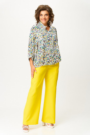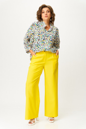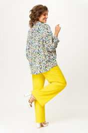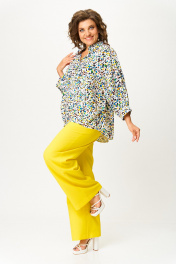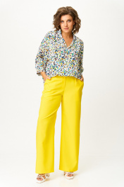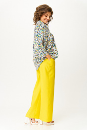 Актуальный и эффектный костюм. Рубашка свободного силуэта, разноуровневой длины (перед короче, спинка длиннее). Застегивается на застежку поло с воротником-стойка. Рукава объемные средней длины на манжете с пуговицей. Застроченные складки по боку и низу переда создают игру объемов целого look-a. Брюки прямого свободного силуэта с классической посадкой на талию, пояс притачной с частично вставленной резинкой, по переду застежка на петлю/пуговицу и шлёвки для вдевания ремня. По переду расположена застежка «гульфик» на молнию, по бокам наклонные внутренние карманы. Костюм функциональный и позволяет комбинировать каждую вещь самостоятельно, создавая новые образы и стили.