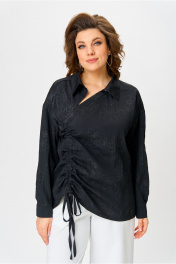 Элегантная ассиметричная рубашка с вертикальным подрезом и вырезом Danaida 2258 черный_жатка