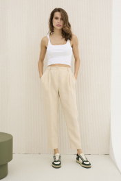 Демисезонные льняные брюки свободного силуэта с карманами DAVA 116 беж
