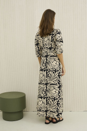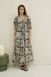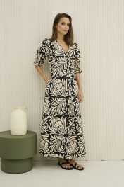 Платье из хлопка бежевое с принтом приталенное на лето DAVA 1206 черный-бежевый